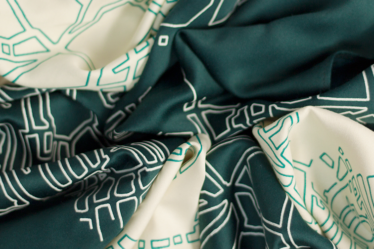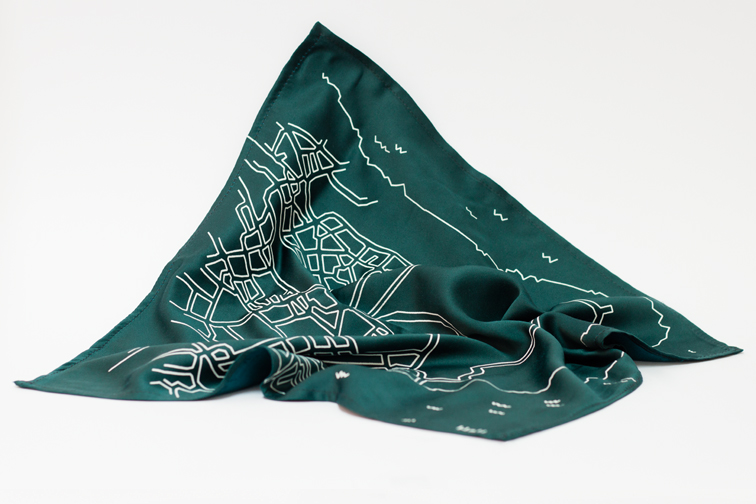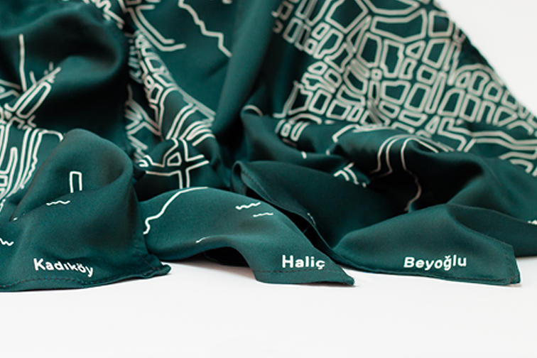 Dieser seidene Hybrid aus Schal, Kopftuch und Straßenkarte ist in reiner Handarbeit während meiner Zeit in Istanbul entstanden.